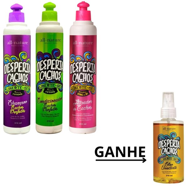 Sugestão de uso: Após o uso do shampoo Desperta Cachos, enxágue o cabelo e aplique o Condicionador Desperta Cachos no comprimento e pontas, evitando a raiz. Deixe agir por 3 minutos e enxágue bem.